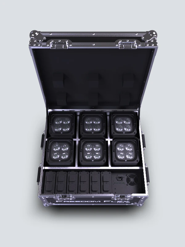 Chauvet Freedom Flex H4 IP X6 este un sistem care include 6 aparate de lumini Freedom Flex H4 IP si 6 incarcatoare de baterii amplasate intr-un case cu incarcator inclus. Freedom Flex H4 IP au lumini RGBAW + UV, oferind capacitati nelimitate de mixaj al culorii. Aparatele pot fi montate la exterior, avand o carcasa robusta, care le protejeaza de apa, zapada, praf si nisip. Aceste lumini pot fi operate wireless, cu FlareCON Air si telecomanda IRC-6.